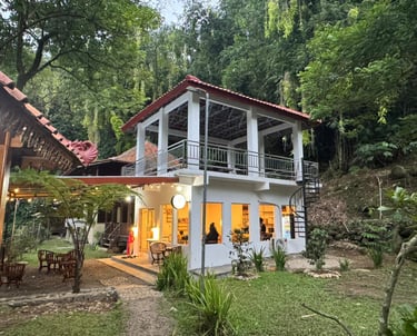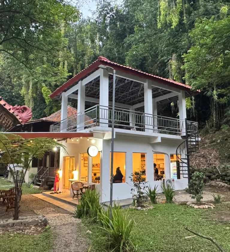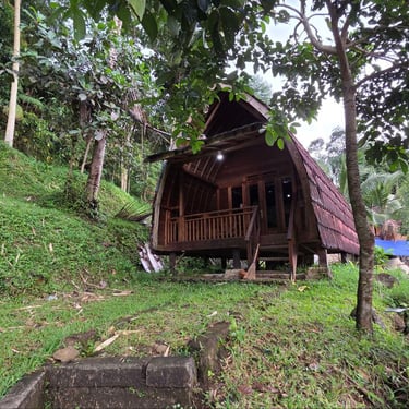 Villa 2 Kamar tidur, 1 Kamar mandi, 1 Dapur untuk 4 dewasa dan 4 anak. Tersedia 1 Villa di tepi sungai dan di samping kafe. Cocok bagi yang suka dengan suara alami dari sungai