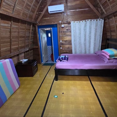 Villa 2 Kamar tidur, 1 Kamar mandi untuk 4 dewasa dan 4 anak. Tersedia 2 Villa di lantai 1 dan lantai 2 masing-masing 2 kamar. Bisa dipesan terpisah atau dipesan bersamaan.